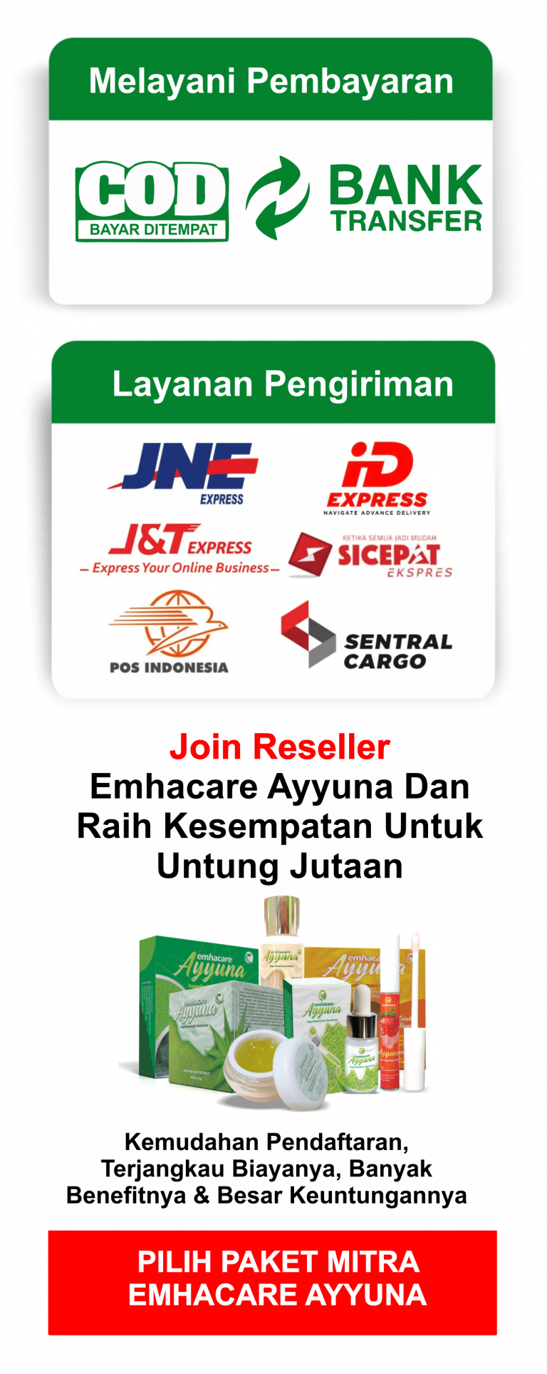 Alhamdulillah, kami akan berusaha setiap produk emhacare ayyuna yang akan didistribusikan sudah memiliki notifikasi BPOM, sehingga legal, serta keamanannya sudah dilakukan kroscek terlebih dahulu oleh lembaga yg berwenag di negara kita. Agar customer dari emhacare ayyuna merasakan nyaman dan aman.